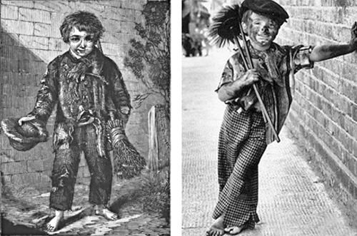 Before Magpie became known as the little sail maker, he was a climbing boy in London. Climbing boys were the young apprentices of chimney sweeps. As early as age four to six, they were forced to climb up and clean the narrow, filthy flues. Many of these children were orphans or had been sold to chimney sweeps for a few guineas. As their working conditions were miserable, they were often pricked in the feet with pins or had lighted straw placed beneath them to get them to climb up the chimneys. They were badly abused and poorly fed, and many of them died of burns or suffocation. If they lived beyond childhood, their growth was often stunted and they suffered from an assortment of respiratory ailments. Fortunately for Magpie, he was rescued from this fate by the Duke of Clarence who arranged and paid for a posting for him on HMS Isabelle.